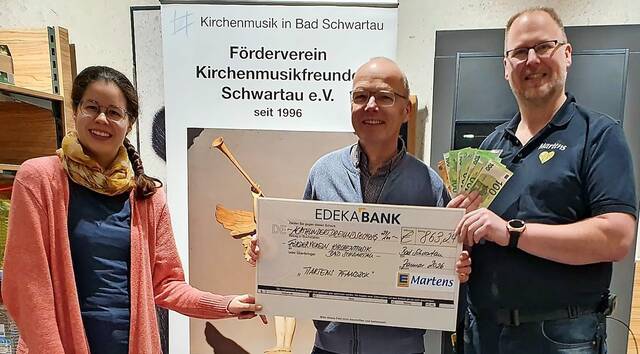 In der vergangenen Woche überreichte Marktleiter Claus-Uwe Hansen einen Scheck an die Vorstandsmitglieder der Kirchenmusikfreunde Meike Kuhlmann und Kurt Schwabe. Im Namen des Vereins dankten sie den Kundinnen und Kunden für ihre Spendebereitschaft und der Geschäftsführung für die tatkräftige Unterstützung.