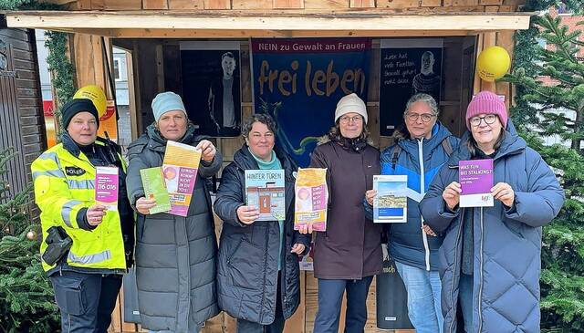 Bad Schwartaus Bürgermeisterin Dr. Katrin Engeln sowie Polizeihauptkommissarin Christiane Hauswirth eröffneten den Stand, der vom Organisator des Weihnachtsmarktes, Thomas Buchholz, für die Aktion zur Verfügung gestellt wurde. Im Laufe des Nachmittags suchten dort zahlreiche Bürgerinnen und Bürger das Gespräch mit der Gleichstellungsbeauftragten Antje Barella, die zusammen mit Julia Dabelstein vom Frauennotruf Ostholstein zum Thema Gewalt gegen Frauen informierte, Fragen beantwortete und auf konkrete Hilfs- und Unterstützungsangebote in der Stadt und im Kreis Ostholstein hinwies.