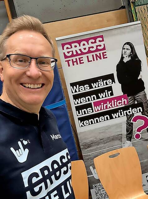 Die Teilnehmenden werden dazu eingeladen, buchstäblich „eine Linie zu überschreiten“. Bei der zentralen Übung wird eine Linie quer durch die Turnhalle geklebt. Dann werden etwa 40 persönliche Fragen vorgelesen – etwa zu Erfahrungen mit Mobbing, Verlusten oder familiären Herausforderungen. Wer eine Frage mit Ja beantworten kann, geht auf die andere Seite. Die anderen zeigen dann ein Handzeichen aus der Gebärdensprache – als Zeichen für „Ich sehe dich, ich respektiere dich, ich bin bei dir“.
