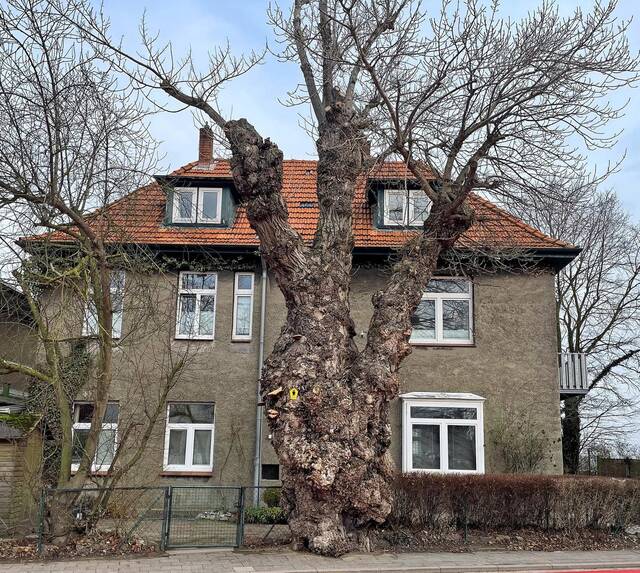 Niendorf. Knorrig, voller Beulen, mit Pilzen besetzt, steht er an der Niendorfer Strandstraße Höhe der Abzweigung Paduaweg. Der riesige Stamm ist halb auf den Gehweg gewachsen, halb auf das Grundstück einer Arztpraxis. Einen Gartenzaun aus Metall konnte ihn nicht aufhalten, der Baum hat ihn umschlossen und sich einverleibt.