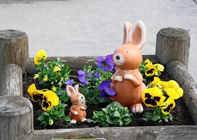 Zu Ostern werden die Blumenkübel in der Dornbreite auch mit Hasen geschmückt.Foto: Interessengemeinschaft DornbreiteLübeck. Auf Initiative der Interessengemeinschaft Dornbreite wurde im Juli 2001 in Zusammenarbeit mit der Hansestadt Lübeck das Konzept zur Verkehrsberuhigung auf der Dornbreite verbessert. Die zuvor aufgestellten Metallgitter – im Volksmund auch als Schweinebuchten bezeichnet – wurden durch Blumenkübel ersetzt. Die Bepflanzung der Blumenkübel, inzwischen in der zweiten Generation, feiert in diesem Jahr 25-jähriges Jubiläum.