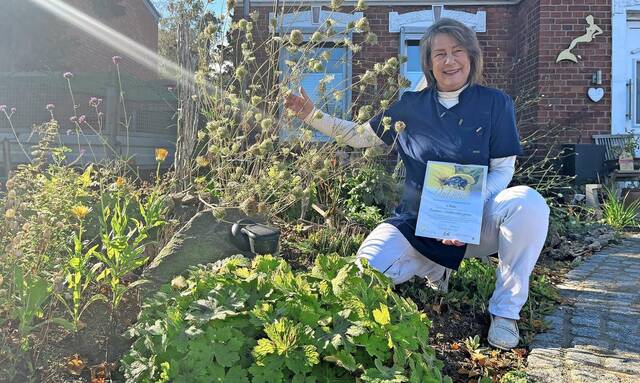 In Berlin nahm die Naturfreundin die Auszeichnung der Stiftung für Mensch und Umwelt in der Kategorie „Gärten bis 500 Quadratmeter“ entgegen. Jedes Jahr prämiert die Stiftung besonders bienenfreundliche Gärten.