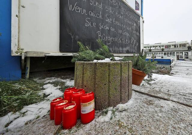 Grablichter stehen vor dem geschlossenen Restaurant „Traveblick“ in Travemünde. Die Inhaberin streitet weiter mit der Stadt über Baugenehmigungen.Foto: Lutz Roeßler