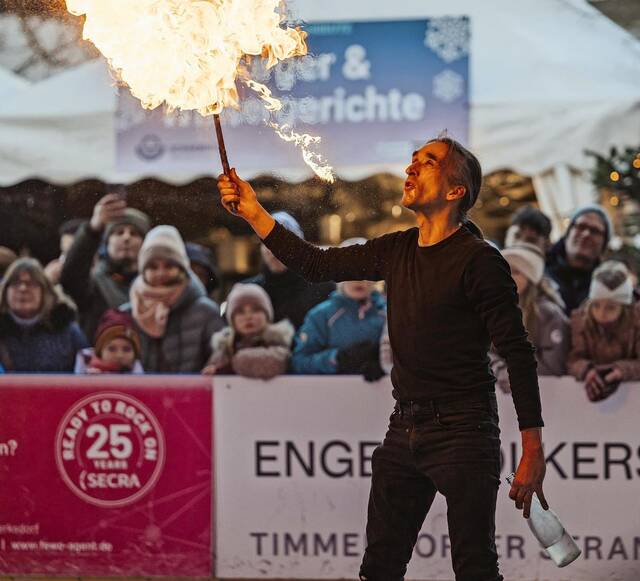Ein besonderes Highlight des Tages ist das Showprogramm am Nachmittag: Ab 14 Uhr präsentiert der Timmendorfer Eissportverein eine Eiskunstlaufshow auf dem Eis. Den feurigen Höhepunkt bildet von 16.30 bis 17 Uhr die spektakuläre Feuer-Show „Fuego Argentino“.Parallel zur Eiswelt öffnen von 12 bis 17 Uhr die Geschäfte in Scharbeutz ihre Türen zum verkaufsoffenen Sonntag. Damit lässt sich der Besuch im Kurpark ideal mit einem entspannten Einkaufsbummel oder einem Spaziergang entlang der winterlichen Ostseeküste verbinden.