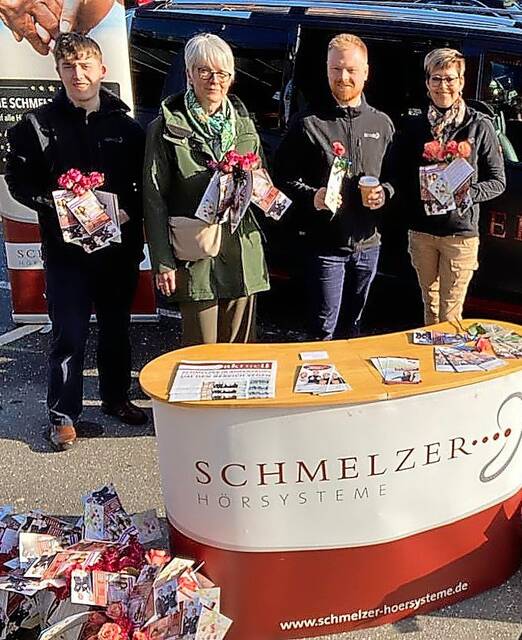 Die Teams von Schmelzer Hörsysteme nutzten den Aktionstag, um mit den Menschen direkt ins Gespräch zu kommen und Aufmerksamkeit für das Thema zu schaffen. Bei freundlichem Frühlingswetter gingen die Mitarbeitenden nach draußen und verteilten Rosen an Passanten und Passantinnen. Nach der langen kalten Zeit war es für viele eine schöne Überraschung, eine Rose geschenkt zu bekommen.