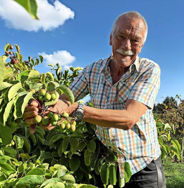 Noch läuft die Ente auf der Plantage von Uwe Kroß auf Hochtouren. Seit Mitte September kann er kistenweise Kiwibeeren pflücken – normalerweise bis Ende Oktober. „Aber dieses Jahr wird früher Schluss sein, denn es war in den vergangenen Wochen einfach zu trocken.“ Falls es doch mal eine Pflanze nicht schafft: Neben seiner Plantage hat der 67-Jährige bereits Kiwibeeren-Nachwuchs angezogen. Zwei Jahre lang sind die kleinen Pflanzen im Topf geblieben, jetzt können sie aufs Feld. „Nächstes Jahr haben sie dann vielleicht zwei, drei Früchte“, sagt Uwe Kroß lachend. Macht aber nichts, er hat Geduld.