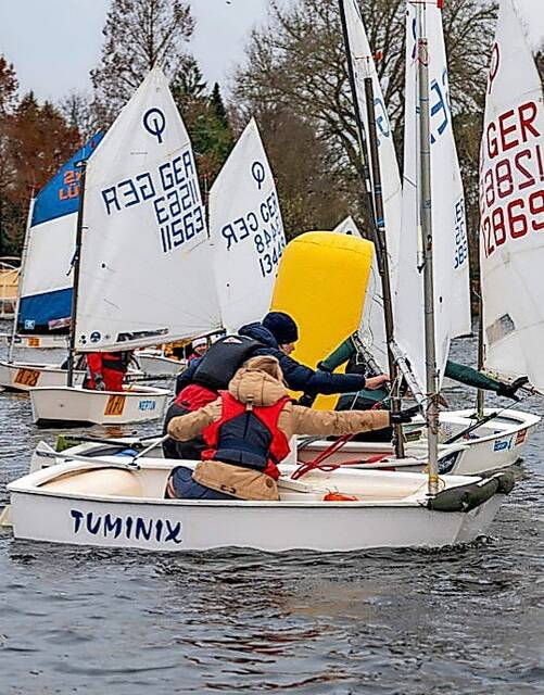 „Mit einem Feld von 61 Optimisten an der Linie hatten wir ein tolles Starterfeld. Dass viele mit Nikolaus-Outfit gesegelt sind, hat der Veranstaltung einen tollen Rahmen gegeben“, sagte Organisator Jan Stemmler.